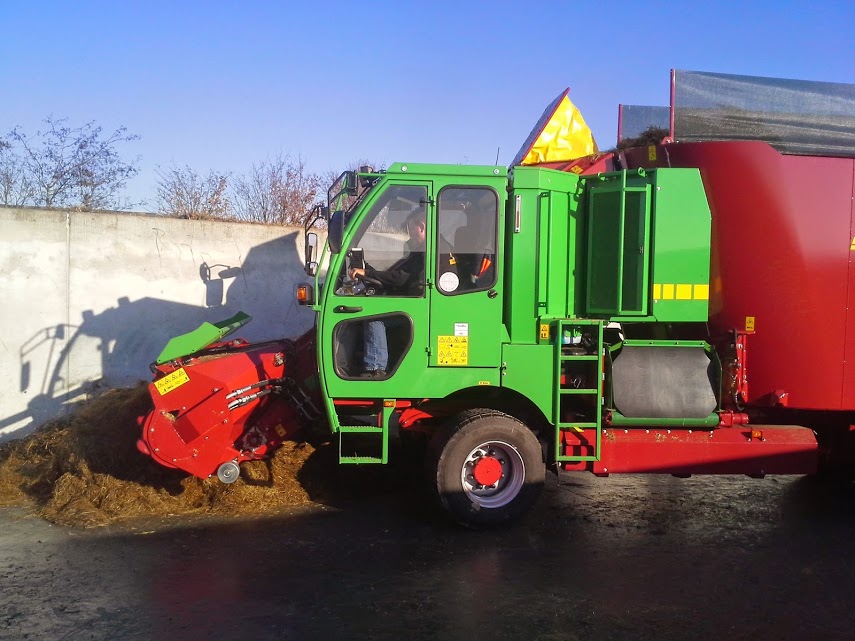 De zelfrijdende voermengwagen is de Strautmann Verti-mix. De machine wordt gevuld door een frees van 2,00 m breed die elke keer een laag uit de kuil freest. Deze machine heeft een laadvermogen van 20 m³ en is voorzien van weeginrichting. Het voer wordt gemengd door een dubbele vijzel en kan aan beide kanten het voer lossen.