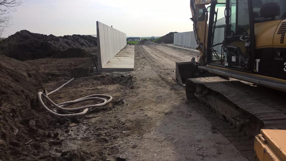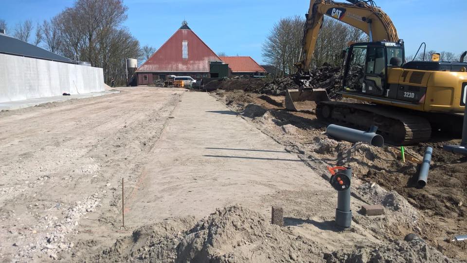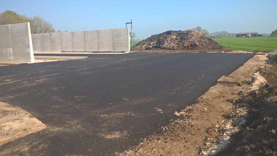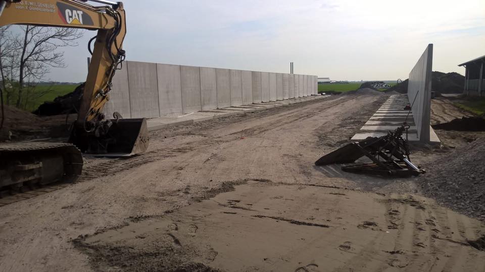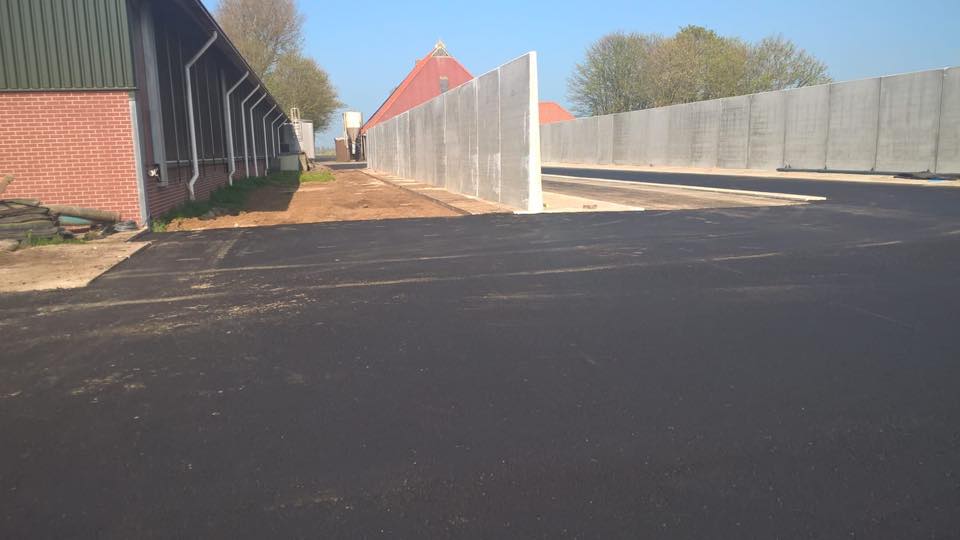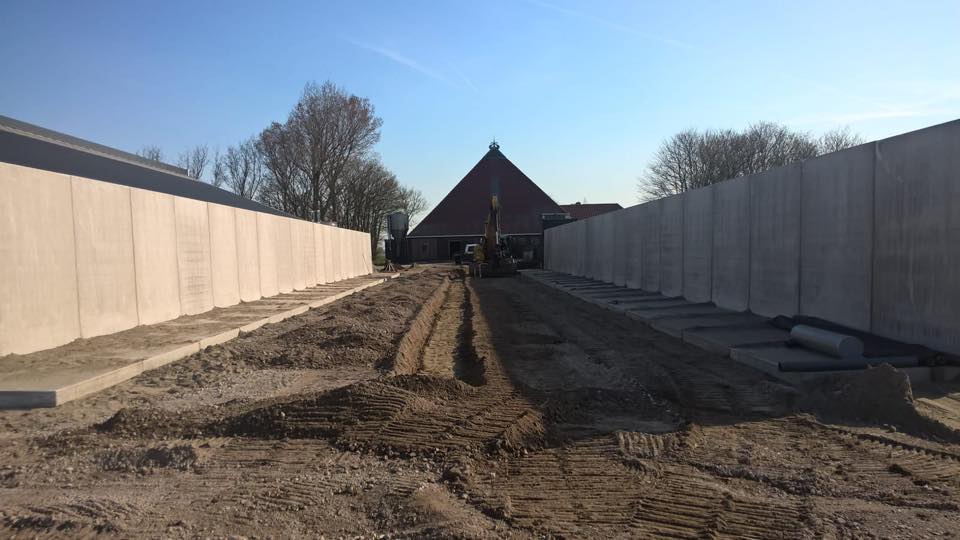 Weer een hele mooie sleufsilo, nu in Tjerkgaast. Afmetingen: 50m lang, 13m breed en 3M hoog. De silo is opgebouwd uit betonnen keerwanden en beschikt over een gescheiden water afvoersysteem. De bodem van de silo en erfverharding zijn uitgevoerd in asfalt.